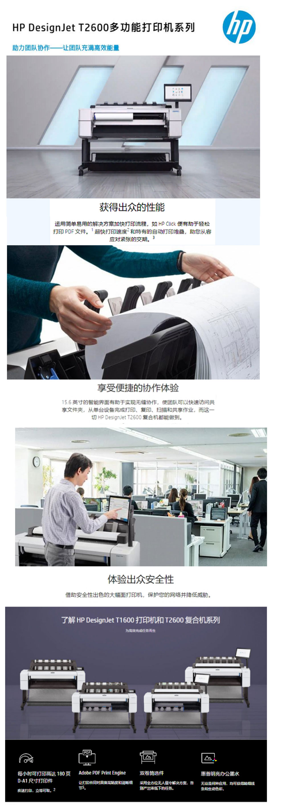 惠普HP DesignJet T2600dr PS MFP 雙卷筒A0繪圖儀+打印掃描復印