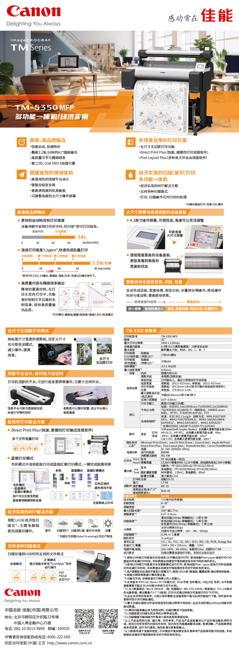 佳能(Canon)TM-5350MFP 36英寸繪圖機 打印 掃描 復印 A0一體機